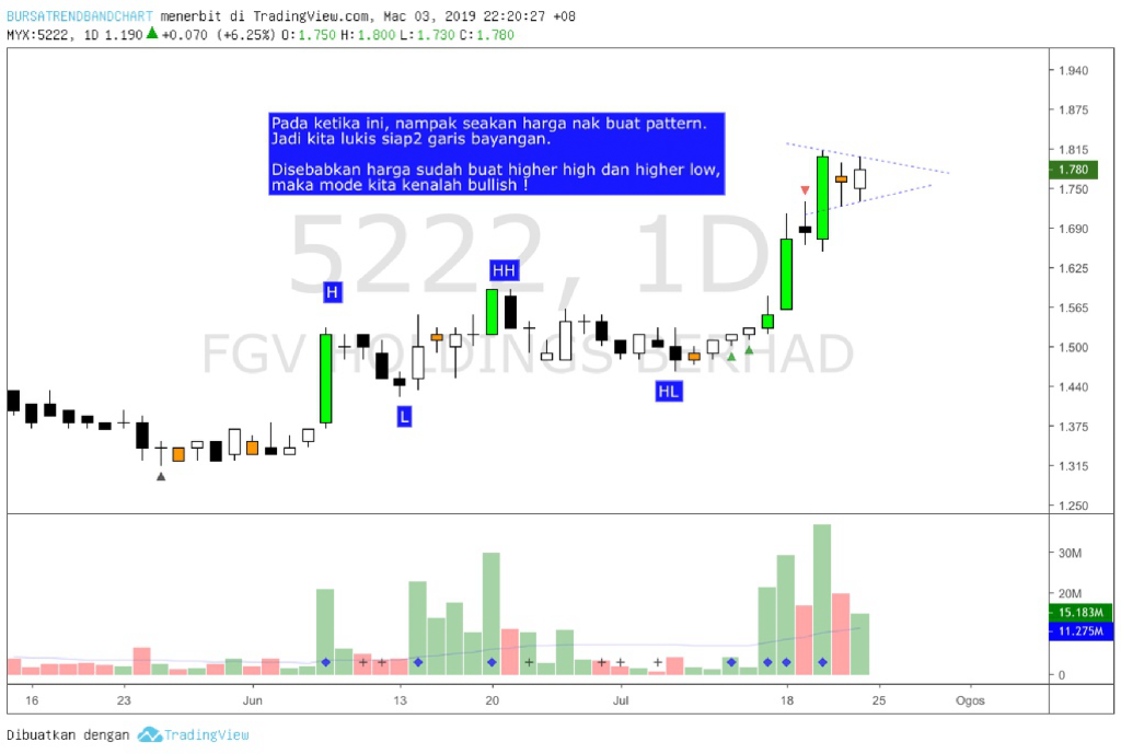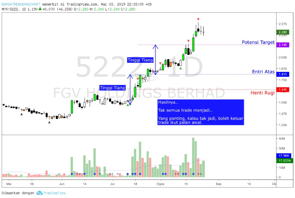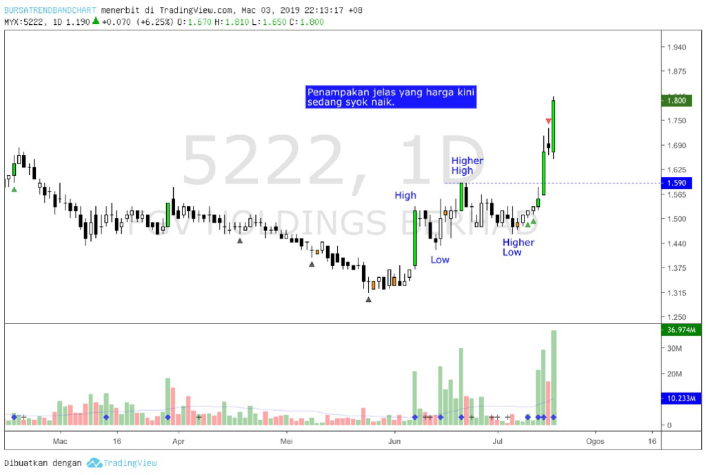 Adakah kaunter yang kita beli sekarang uptrend, sideway atau downtrend. Boleh rujuk pada chart di atas untuk melihat secara visual.